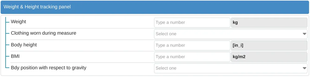 In the LHC-Forms Widget, you can enter any information in the ‘Weight height tracking panel’ we selected earlier, or in your edited form.
